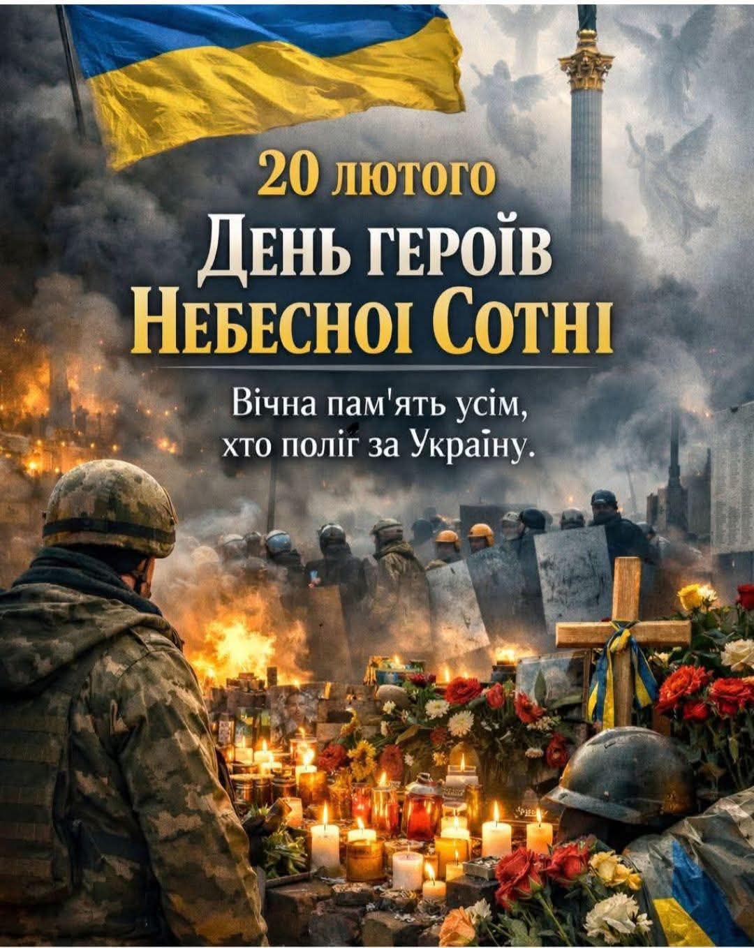 Сьогодні, 20 лютого, Україна вшановує пам’ять Героїв Небесної Сотні.